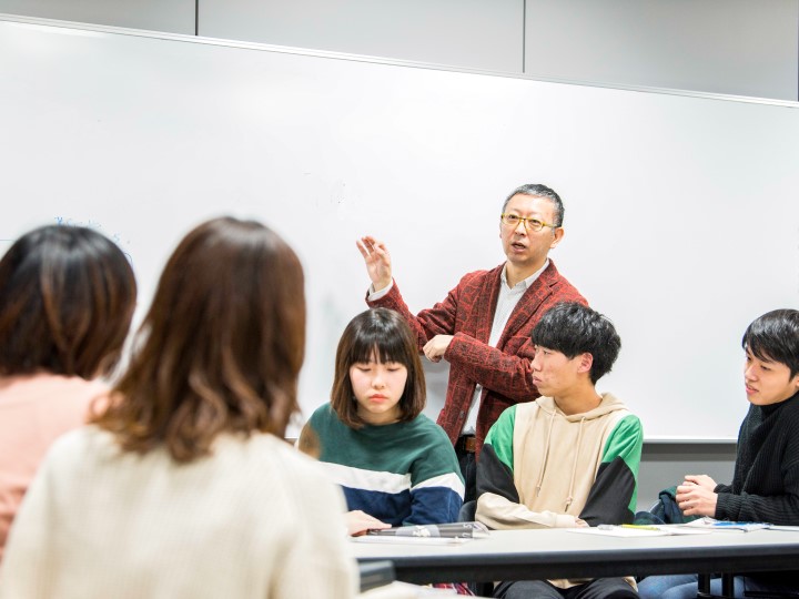 本学の特長は、1年次から4年間全ての学生が履修する、ゼミをはじめとする少人数制授業にあります。平均十数名の少人数で開講されるゼミ約400種類。ゼミでは特定のテーマについて発表・ディスカッションを繰り返しながら学び、学生は教員や仲間との対話を通じて、物事の本質を見極め追究していきます。