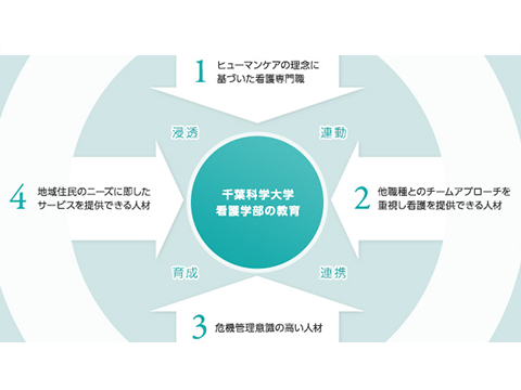 工業技術の発展と共に高度に複雑化を増す現代社会、急速に進む高齢化社会。その時代の社会動向に対応した高度な専門知識と技術を持つとともに、豊かな人間性を兼ね備えた人材の育成にあたるため、千葉科学大学では薬学部と日本初の危機管理学部そして看護学部という専門性の高い学部を設置しています。