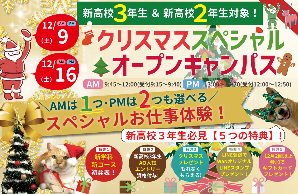 12月9日(土)AMコース、PMコース、12月16日(土)AMコース、PMコースの全4回開催するクリスマスオープンキャンパスに、