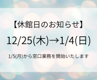 冬期休暇期間【2025年12月25日(木)〜2026年1月4日(日)】