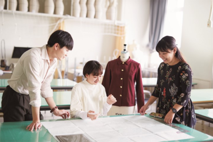 服づくりの理論と技術を基礎から学び、アパレル・プロデュース・アドバンストの3つのフィールドから自由にカリキュラムを選択する横断的履修システムで、多様化するファッション業界に対応できる力を養います。