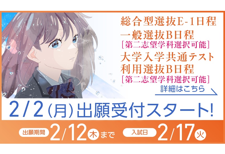 総合型選抜E-1日程、一般選抜・大学入学共通テスト利用選抜B日程 2/2〜出願スタート