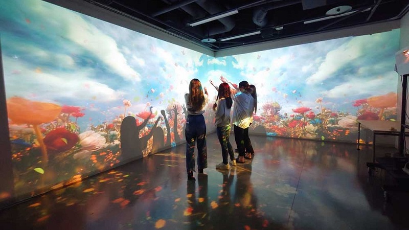 さまざまな空間表現を行うことができるウォールスクリーンやクロマキ撮影用のスタジオ、3DプリンタやUVプリンタなどの機器が揃った「ツクリバ」などがあります。