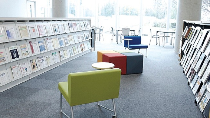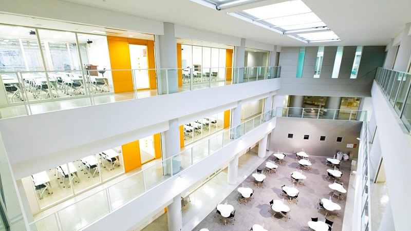 インフォメーションエリア、コラボレーションエリア、ライティングエリア、ラーニングコモンズは学修に適した場で、すべての学生と教職員が知識・情報・勉学を共有できる図書館棟です。
