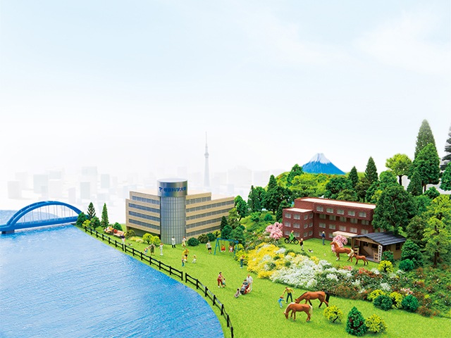 小高い丘に広がる東京西キャンパスは、広大な敷地・緑豊かな環境を活かした自然や動物と共生する自然派キャンパスです。