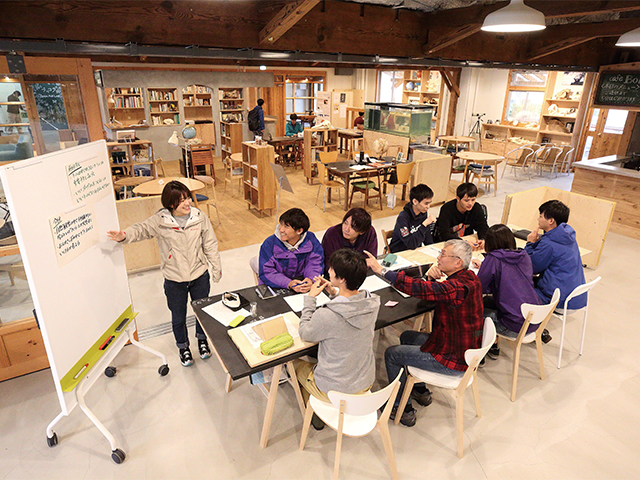 フィールドミュージアムの象徴施設である「ブリコラ」。ワークショップやミーティング、共同作業、教員とのディスカッションなど自由に使うことができます。学生や教員の活動が見えるオープンスペースです。