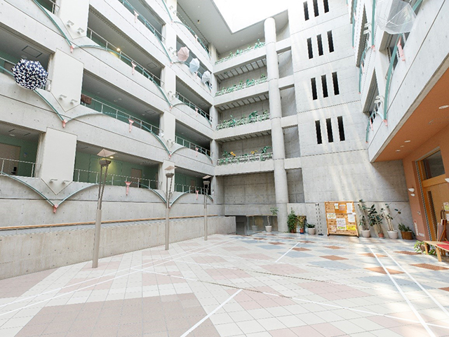 おしゃれなシティホテルのようなモダンな建物で、明るく開放的な雰囲気が自慢の寮。大理石と御影石をあしらったエントランスを抜けると、吹き抜けのアトリウムが広がり、洗練された雰囲気が漂います。