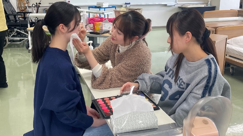 介護福祉士の知識や技術の習得は正直どの学校でも習うことは変わりません。その中で本校では、美容福祉・ヘルスケア福祉の授業を取り入れ、オリジナルの介護福祉士の養成を行っています。