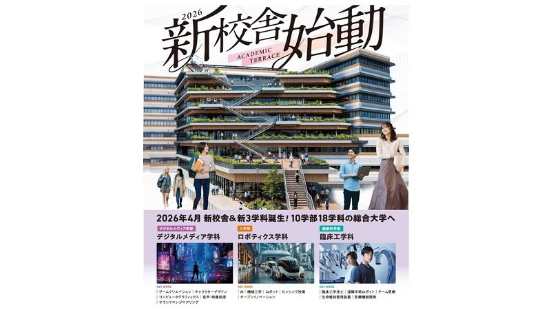 2026年4月の「デジタルメディア学科」「ロボティクス学科」「臨床工学科」開設に合わせて誕生した教育研究設備。さまざまなアクティビティの選択肢が広がる施設です。