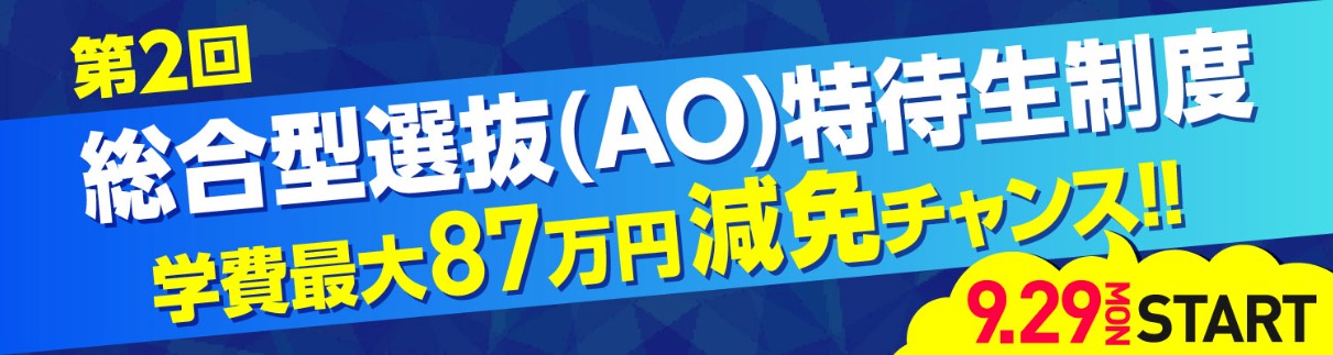 1.授業料最大「87万円」免除のチャンス!総合型選抜(AO)特待生制度の受験資格贈呈!