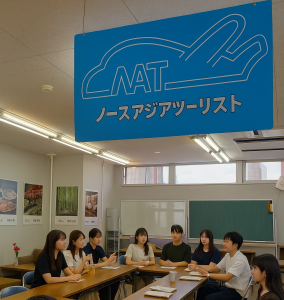 総合政策学部国際学科・観光コースの模擬旅行会社「ノースアジアツーリスト」では、学生が「社員」となり、旅行の企画から添乗までを実践学修しています。