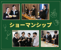 ショーマンシップの授業では、レストランサービスの演出を学ぶことができます。