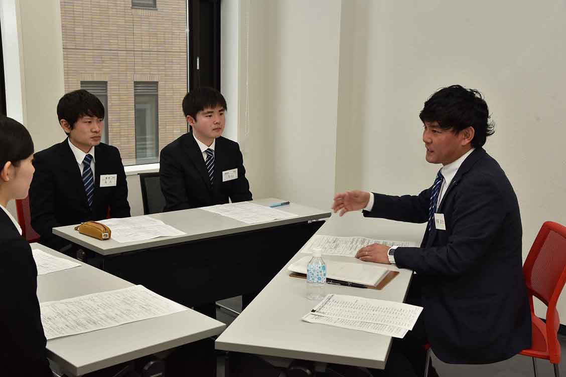 就職ガイダンスをはじめ、学内企業説明会、就職対策講座、OB・OG交流会、面接対策会、模擬試験、個人面談などを目的別に実施。また、企業から届く「企業・求人情報」や「セミナー情報」・「合同企業説明会」などの最新情報を各自の進路登録に基づき提供し、「企業検索」・「OB・OG検索」も可能、就職活動を情報面からバックアップするキャリアデザイン就職支援webシステム「たまナビ」など、各学科の就職担当、担任とキャリアセンターとが連携を取りながら、1年次からきめ細かなサポートを展開しています。