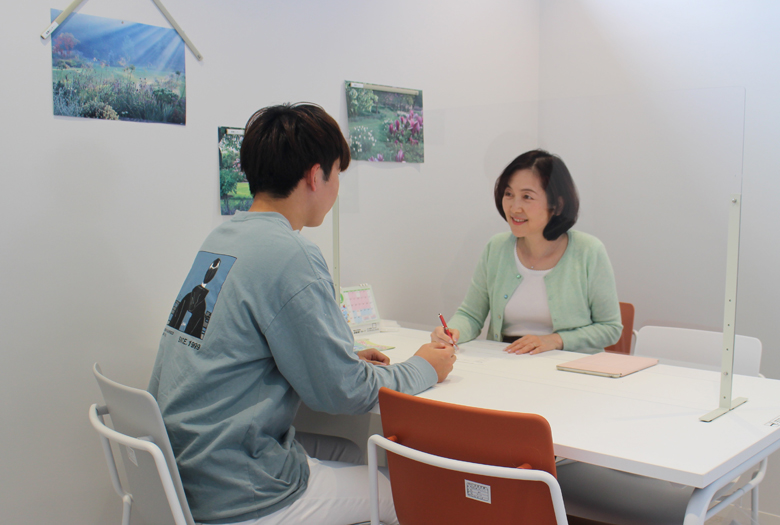 国家資格キャリアコンサルタントが常駐するキャリアセンターで、個別相談を受けることができます。就職活動に向けた履歴書の添削や、面接対策はもちろん、企業研究や自己分析も専門家が一緒に行ってくれます。低学年からインターンシップの相談や将来設計のアドバイスなども行っており、年間の相談件数は1,000件を超え、多くの学生の良き相談者として、学生の来談を待っています。