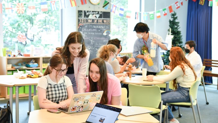 国際化への対応として、学力や興味に合わせて外国語学習や異文化体験ができる環境を整備。多文化共生、他者理解の視点を備えた「グローバルリーダー」の育成に力を注いでいます。