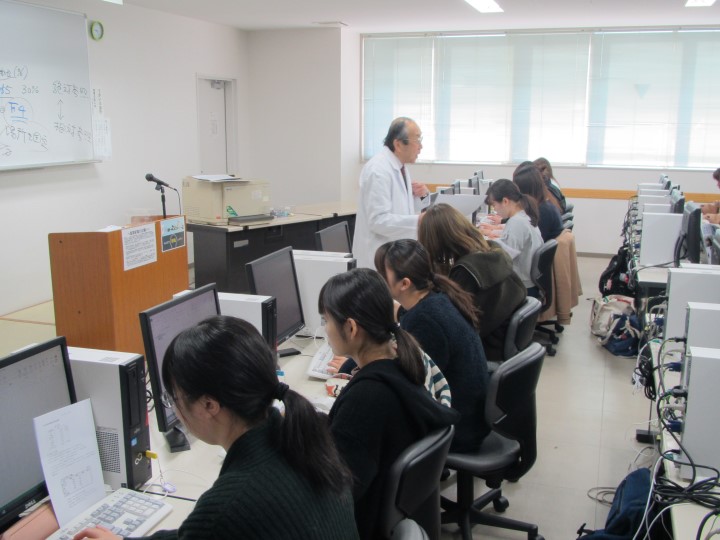 コンピュータールームでは献立作成や栄養管理の技術を習得。