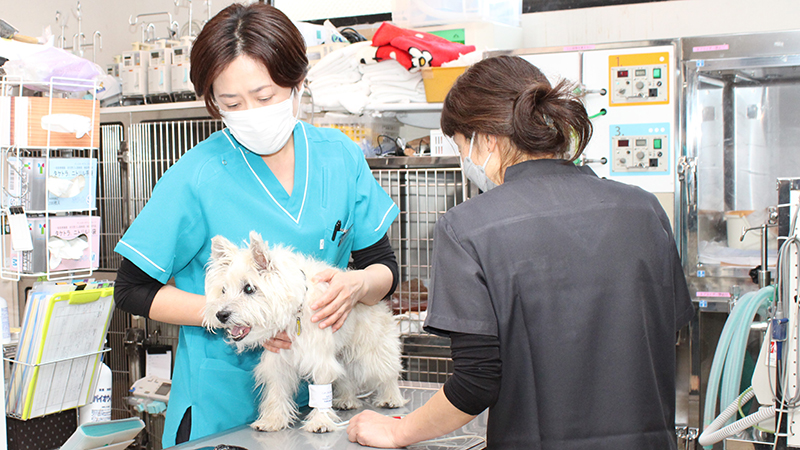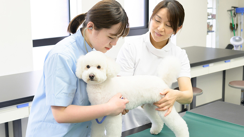 50年以上にわたり動物看護教育に深く関わってきた本校は、国家資格を見据えた教育をいち早く導入し、動物医療の現場で活躍する多くの卒業生を輩出してきました。3年間で動物看護を中心にグルーミング、家庭犬のトレーニングを総合的に学修できるよう、講義と実習をバランスよく配置した力リキュラムでプロとしての即戦力を養成します。また、専任教員はすべて愛玩動物看護師と獣医師で構成されており、普段の授業から国家試験を意識した学びを受けることができます。