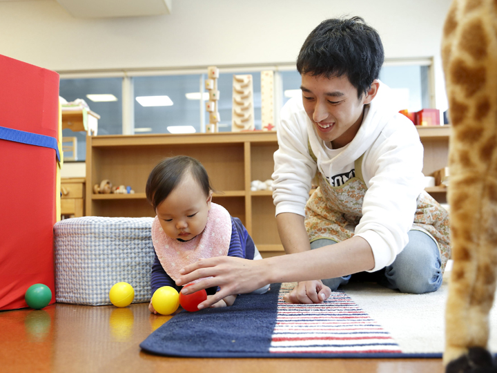 大阪青山大学では、学内の「子育て支援室」を近隣の親子に開放し、子育てをサポートしています。