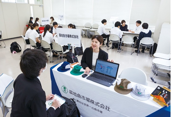 両学科の学生が入学時から内定獲得まで、教員や企業の人事部門で活躍した元部長、国家資格を持った専門スタッフが、学生一人ひとりの就職活動を支援。また、1年次前期からキャリアガイダンスや適性検査、個人面談のほか、就職基本講座などをスタート。後期からは様々な企業の採用担当者を招く「学内合同企業説明会」も行われ、毎年多くの学生がこの説明会をきっかけにして内定を獲得しています。また、ホテルやマーケティング企業などで行うインターンシップや大手企業から現役社員を講師として招いた科目「ビジネス社会と出会う」を通じて、就職活動に必要な知識やスキルを身につけ、1年生のうちから目標を明確にさせていきます。学生1人ひとりに対して、親切・丁寧に対応することで、学生の将来を全力でバックアップします。