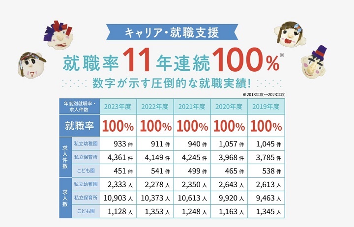 「保育の聖徳(R)」安心の11年連続就職率100%(2013〜2024年度実績)