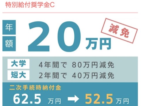 特別給付奨学金(C) 年間20万円学費減免