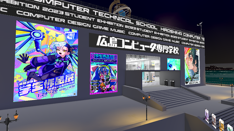 広コンで特に力を入れているのがものづくり。アプリ開発、ゲーム制作、グラフィックデザイン、ライブなど各分野ならではの作品づくりを通して、就職後に即戦力として活躍できる力を身につけます。卒業制作として行われる「学生作品展」では、作品がプロの目にとまったことがきっかけで内定に繋がった学生も多くいます。またメタバースを活用した「学生作品展・バーチャル会場」では、専用アプリをダウンロードすることで、スマホで学生の作品をお楽しみいただけます。