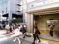 改札口となりが学校。愛知県の中心に位置し、交通の便が非常に良いです。