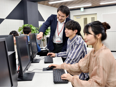 実践力を徹底して伸ばすため、基礎から応用レベルまで、アクティブラーニング中心に丁寧に学習を積み重ねます。個人でのスキルアップだけでなく、グループワークを通して社会に通用するコミュニケーション力も育成します。