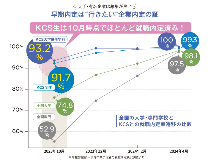 本校が考える就職の質とは、“行ける”就職先に進むのではなく、幅広い選択肢の中から自分にとって“行きたい”就職先を選ぶことです。
