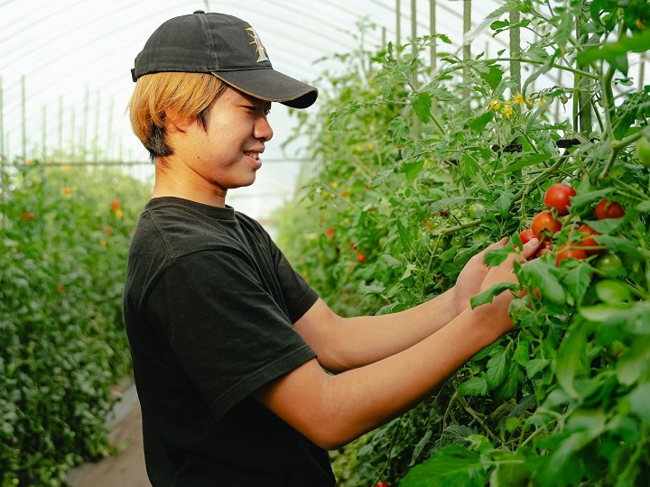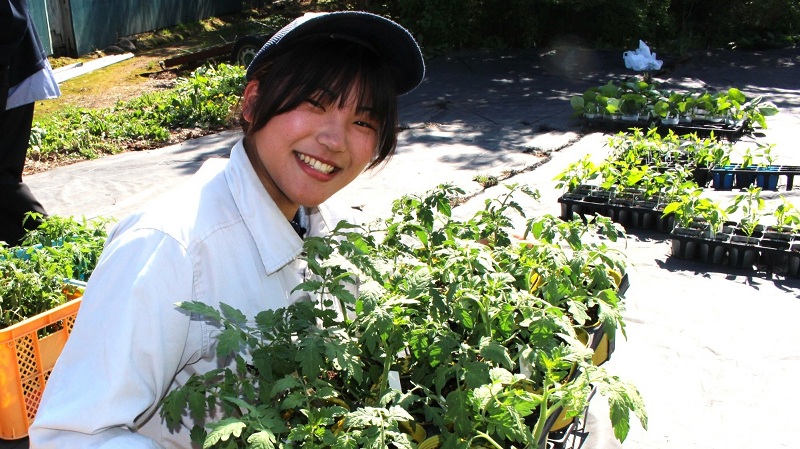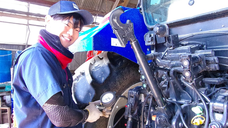 本校には2つのグループ(畜産・園芸)と5つのコース(乳牛・日高畜産・耕作機械・野菜・果樹)があります。1年次は班ごとに分かれ、日替わりで各コースの実習を行い、協力しながら農業全般を学びます。2年次には5コースのうち1つを選択し、希望する分野での基礎の技術と専門知識を多くの時間をかけて自分のものとしていきます。