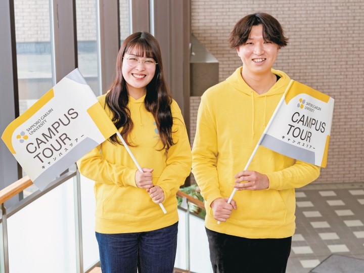 学科説明&授業体験、入試ナビゲーション(入試概要説明会)、サツガク・ガイダンス(保護者向け)、はじめての奨学金講座、サツガクの教職員と話す「個別相談コーナー」、サツガク生と話す「SGU Cafe」、キャンパスツアー(新札幌)&スポーツ施設ツアー