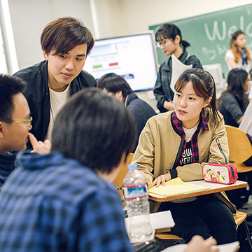 APUのキャンパスは日本語と英語が公用語で、学部講義のおよそ95%を日英二言語で開講しているため、日本の大学でありながら世界の学生が共に学ぶことを可能にしています。入学後は集中的な言語学習で英語を学ぶだけではなく、専門科目を英語で学ぶことで、国際ビジネスや学術の世界で通用する高度な言語運用能力と専門知識の習得に繋がっています。
