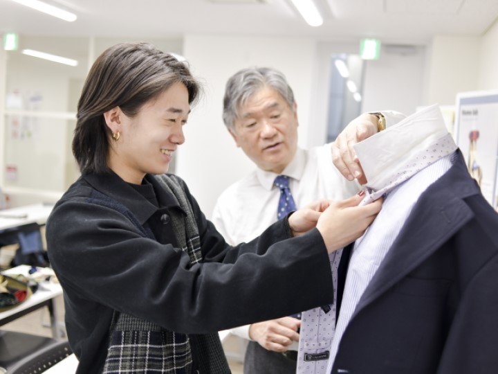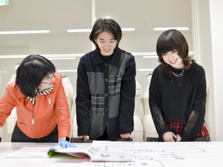 アパレルのプロセス(企画→生産→販売)を総合的に学べるカリキュラムです。そのため学びながら将来就きたい職種や自分の適性を見つけることができます。総合力が身につくため、将来アパレル経営や自分のブランドを持ちたい方に最適なカリキュラムです。