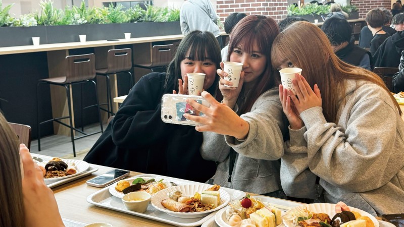 友だちとのんびり休憩できるラウンジや栄養満点なおいしいランチが食べられる学食まで!