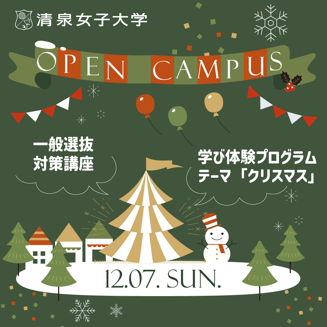 クリスマスをテーマにした学び体験プログラムに加え、一般選抜対策講座を開催します。総合ガイダンスやキャンパスツアー、個別相談も実施しますので、高校1・2年生もお気軽にご参加ください!