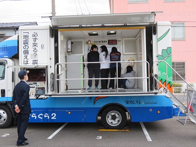 2024.05.13 津波により学校内にろう城することを想定し、自分たちがとるべき行動を確認することができました。また、起震車体験や消火器訓練、地震に関するDVD視聴を行い、防災に関する知識と経験を積むことができました。