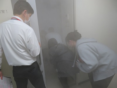 2025.07.25 火災を想定した防災訓練を実施しました。校舎3階の火災感知器が作動し緊急放送が流れると火元確認、初期消火、119番通報訓練と進み、その後、避難誘導係の教員の誘導のもとすばやく指定避難場所の校舎南側駐車場に避難が完了しました。体験訓練では、煙体験や消火器訓練、煙発生時の避難行動のDVDを視聴し、災害時に適切な行動が出来るように訓練しました。