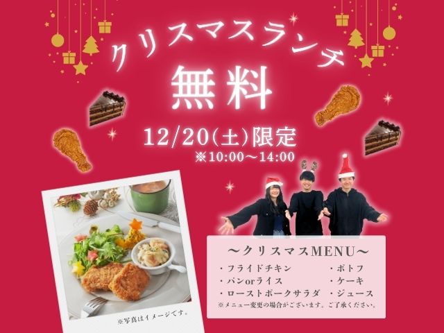 今年最後の土曜開催は在校生が考えたクリスマスランチが無料で食べられるスペシャルイベントです!
