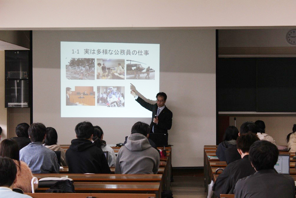 2025.06.19 総合政策学部では、1年生が2年次以降の学科やコースを選ぶ際の参考にするため、「総合政策基礎論」を開講しています。4月16日の授業では「公務員コース」が主催となり、公務員の職務内容や試験の概要に関する説明が行われました。https://www.nau.ac.jp/law/news/284005.html