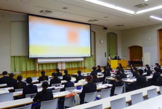OBOGの就職活動体験談や、今の仕事について語ってもらいます。3年次に設定している「キャリアアップセミナー」では、尚絅学院大学を卒業し、就職した先輩を講師として迎え、業界事情や社会人の生活などの話を後輩に話します。