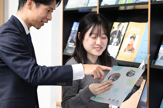 各クラスには担任の先生がつき、一人ひとりの出席状況や成績を把握しながら徹底的な指導を展開します。就職指導も担任の先生はもちろん、就職専門のスタッフも常駐しているため、タイムリーな就職指導、情報提供を欠かしません。またマンツーマンの面接時間を設け、それぞれの個性や適性を見極めながら進路や企業選びをサポート。弱気になりがちな就職活動期も“いつでも話せる”&“相談できる”先生があなたの挑戦を後押しします。