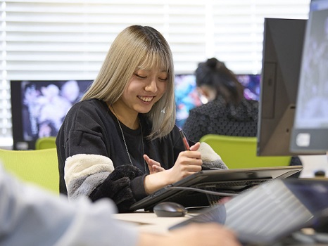 長い伝統と実績がある本学は企業から高い信頼を獲得し、毎年多くの求人が寄せられています。就職やデビューを目指して、在学期間を通して学生一人ひとりにきめ細やかな指導を行います。1年次には、基礎知識はもとより、就職活動に欠かせないポートフォリオの制作や活用法を学びます。2年次には「産学共同プロジェクト」で企業からの依頼に基づいた制作に取り組んで実践力を磨くほか、求人情報やインターンシップ(企業内研修)プログラムの紹介、OB・OGとの交流などのサポートを受けて就職活動に取り組めます。さらには卒業後も、就職や独立などキャリアアップをサポートしています。