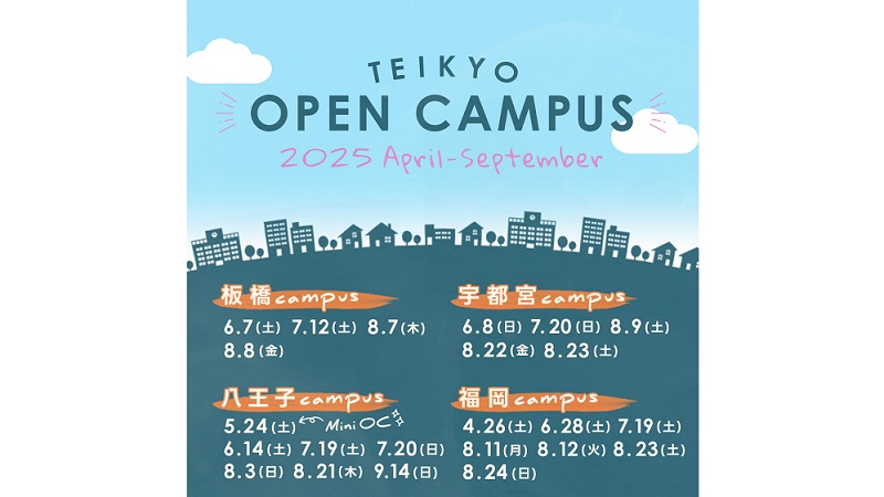 【オープンキャンパス】2025/6/14(土)、7/19(土)〜7/20(日)、8/3(日)、8/21(木)、9/14(日)、2026/3/20(金)