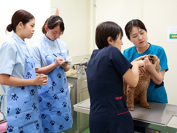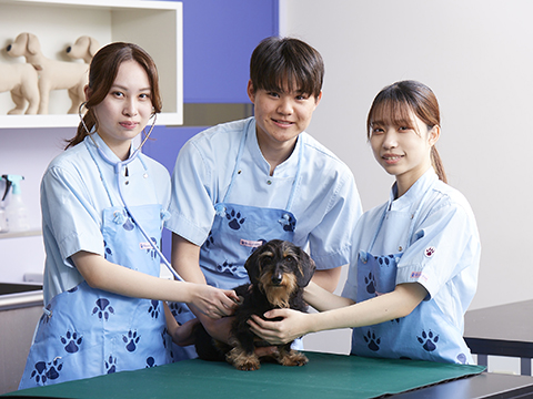 50年以上にわたり動物看護教育に深く関わってきた本校は、国家資格を見据えた教育をいち早く導入し、動物医療の現場で活躍する多くの卒業生を輩出してきました。3年間で動物看護を中心にグルーミング、家庭犬のトレーニングを総合的に学修できるよう、講義と実習をバランスよく配置した力リキュラムでプロとしての即戦力を養成します。また、専任教員はすべて愛玩動物看護師と獣医師で構成されており、普段の授業から国家試験を意識した学びを受けることができます。