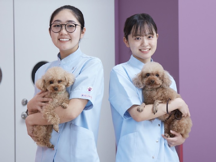 主に実習を行う渋谷キャンパス1号館には、動物病院(アニマル・メディカル・センター)とグルーミングサロン(シブヤ・ドッグ・ビューティー)が併設しており、通常の営業を行いながら、本校学生の実習の受入先としても機能しています。そのほか、グルーミングやリハビリテーションを学ぶための最新の設備が整っています。