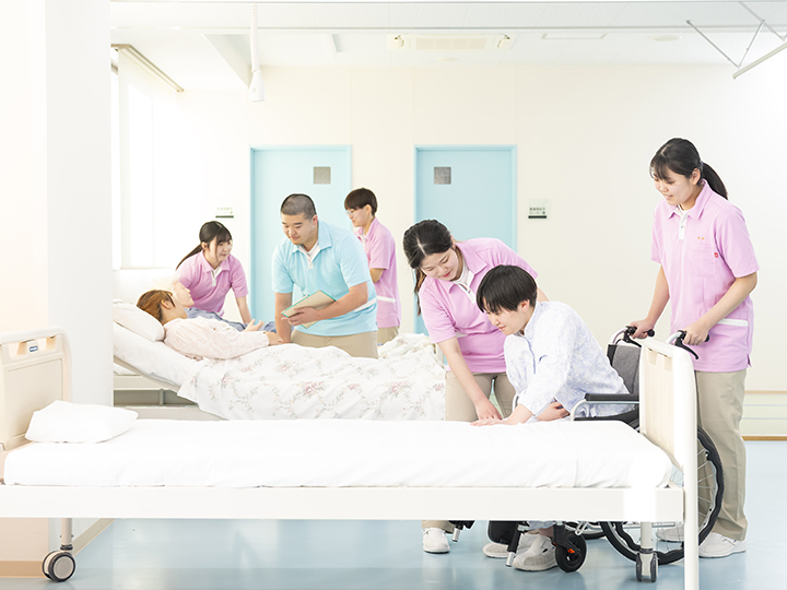 基礎介護実習室、入浴実習室、医療的ケア演習室、家政学実習室など介護を学ぶ充実した施設があります。
