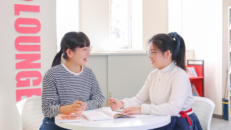 人文総合コースでは、本学の強みである日本文化の基礎的な知識を修得し、読解力や問題解決力を育成。さらにことばを用いた実践や自己表現を行う力を身につけます。文学・歴史・思想・哲学を中核とした学びを深めます。また、異文化コミュニケーション・多文化共生を掲げ、「ことば」をキーワードとした「ことば学」をベースに異文化理解に必須な自文化理解をカリキュラム化しています。
