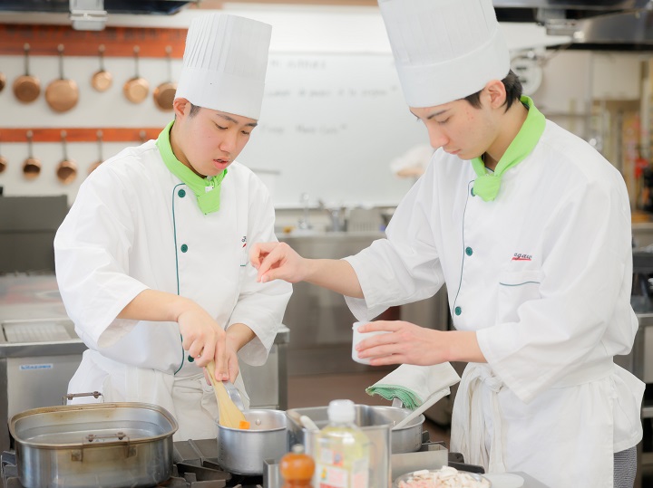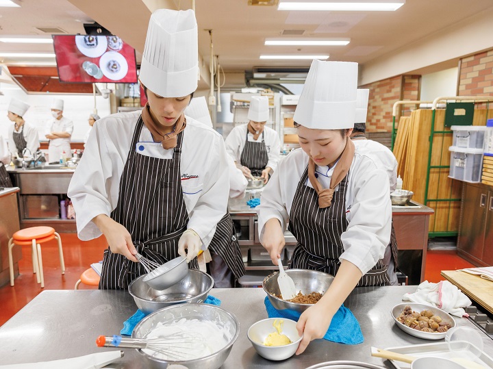 調理、製菓・製パン技術を学び「調理師免許を持ったパティシエ・ブーランジェ」あるいは「パティシエ・ブーランジェの技術・知識を持ったシェフ」「パンを焼くことのできるシェフ」を養成しています。