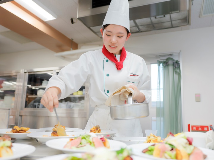 調理と製菓・製パン技術を2年間通して学び、幅広い知識とバリエーション豊かな技術を修得するコース