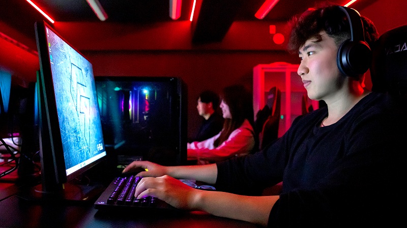 高性能なゲーミングPCや専用デバイスを備えたeスポーツ教室を設置。放課後には自由に利用することができ、集中してプレーや研究に取り組めます。元eスポーツ選手としての経験を持つ教員も在籍し、競技視点や戦術的な考え方に触れることができる環境です。